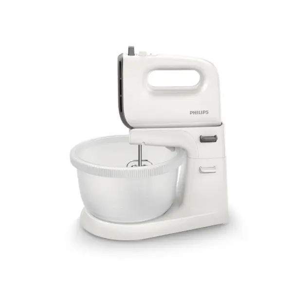 Mikser tvrtke Philips pomaže vam u pripremi ukusnih izdašnih kolača i kruha za obitelj. Miješanje konusnim nastavkom uz prodiranje zraka omogućuje kraće vrijeme miješanja i glađu smjesu za kolače. Njegov snažni motor od 450 W olakšat će miješanje i najgušćeg tijesta.