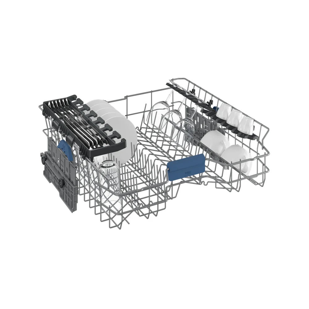 Vrsta podešavanje gornje korpe: New 3 Position Loaded Adjustable_L Broj sklapajućih nosača za tanjire (donja korpa): 4 Klizna korpa za escajg Polica za šolje Broj polica za šolje: 2 Dodaci: New Knife Accessory |