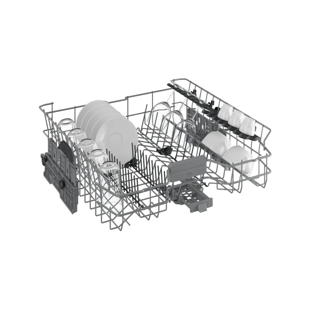 Korpa za pribor za jelo u punoj veličini Tip podešavanja gornje korpe: New 3 Position Loaded Adjustable_L Broj nosača lako sklopivih rešetki (Donja košara): 4 Broj nosača lako sklopivih rešetki (Gornja košara): 3 Tip košarice za pribor za jelo: Slim-size Cutlery Basket |