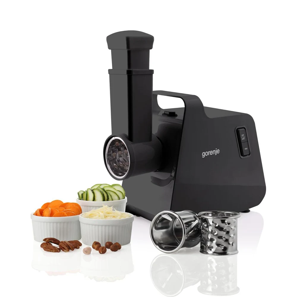 Rešetke za mljevenje mesa: 3 i 8 mm Prečnik diska: 54 mm Guralica 3 nastavka za rezanje i ribanje |
