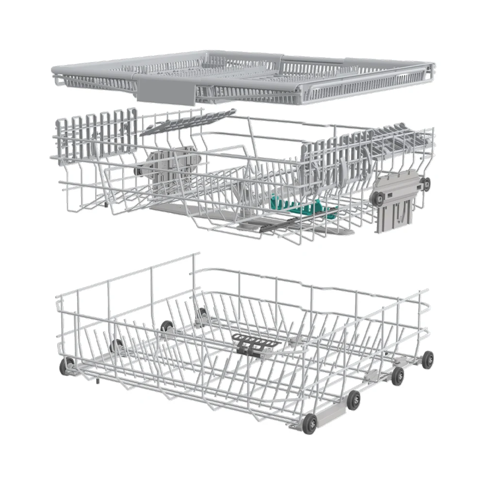 Broj korpi: 3 Gornja korpa 2 držača za čaše Široki nosač za noževe Fiksirana potpora za staklenke Fiksni držači Sklopiva/odvojiva lijeva polica Preklopljiva lijeva polica CupHolder za čaše Široka mreža Donja korpa Široka mreža Preklapajući/djeljivi zadnji držači Korpa za kuhinjski pribor Gornja korpa (za pribor za jelo) Sklopiva / odstranjiva Višenamjenska donja korpa |