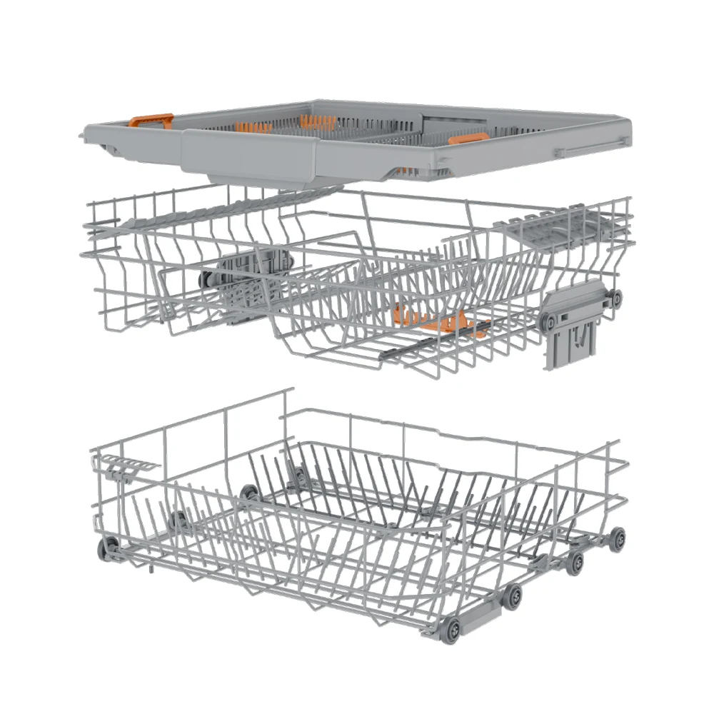 Broj korpi: 3 Gornja korpa 3 držača za čaše Široki nosač za noževe Fiksirana potpora za staklenke Fiksni držači Sklopiva/odvojiva lijeva polica Preklopljiva desna polica CupHolder za čaše Preklopljiva lijeva polica CupHolder za čaše Široka mreža Donja korpa Široka mreža Preklapajući/djeljivi zadnji držači Gornja korpa (za pribor za jelo) Sklopiva / odstranjiva Sa teleskopskim vodilicama Ručka Ručka s plastičnim logotipom Odstranjiva Bez logotipa |