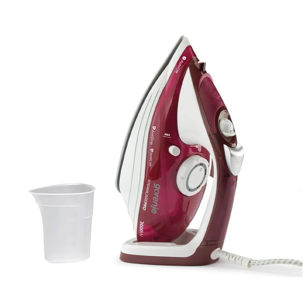 Regulator temperature Kontrolna sijalica za nizak nivo vode Vertikalno ispuštanje pare Peglanje bez pare Peglanje sa suhom parom Funkcija prskanja Okretanje priključnog kabla 180 ° Izuzetno koristan, veliki otvor za punjenje s poklopcem |