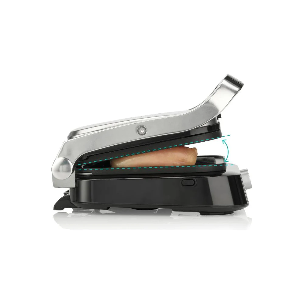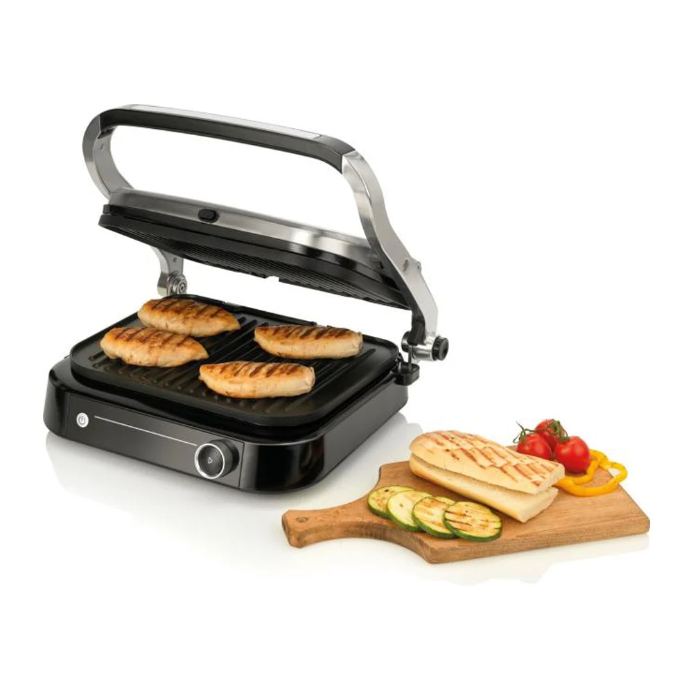 Elegantni i moderni uređaj će se dobro uklopiti u svaki kuhinjski ambijent. Snažan, jednostavan mehanizam za korištenje pomoći će vam da lako rukujete poklopcem. Idealan za ravnomjerno kuhanje, jer pruža udobno prianjanje za debelu hranu, poput velikih odrezaka ili sendviča.