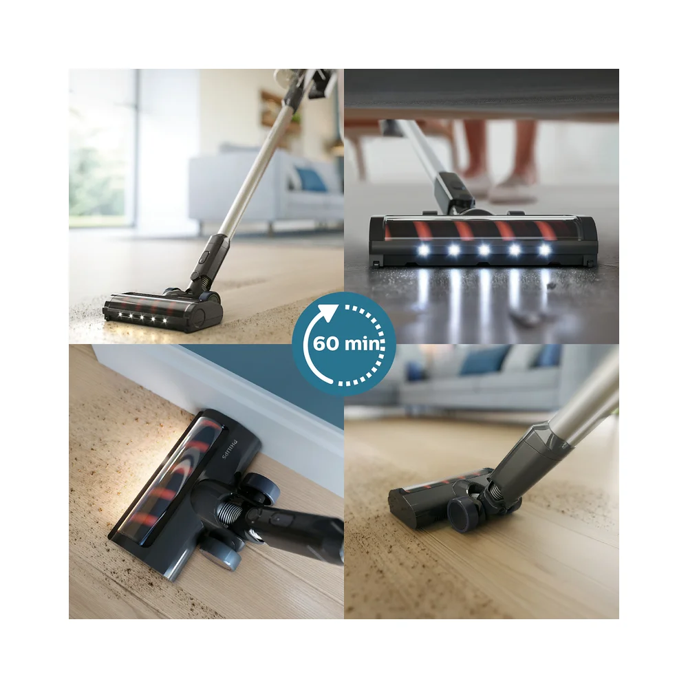 Uz jedno punjenje serija Philips 3000 čisti više od 195 m2 u načinu rada Eco i više od 70 m2 u načinu rada Turbo(7). Želite nastaviti čistiti bez ponovnog punjenja? Zahvaljujući zamjenjivoj bateriji možete umetnuti dodatnu bateriju i nastaviti usisavati gotovo trenutno. Dodatna baterija (XV1633) prodaje se zasebno.