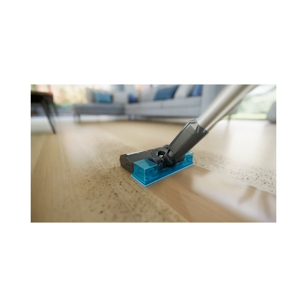 PowerCyclone 8 i digitalni motor PowerBlade zajedno generiraju veliku brzinu protoka zraka (do 820 l/min(3)) na energetski učinkovit način. Rezultat? Temeljito usisavanje prašine i prljavštine uz duže vrijeme rada, naročito na tvrdim podovima.
