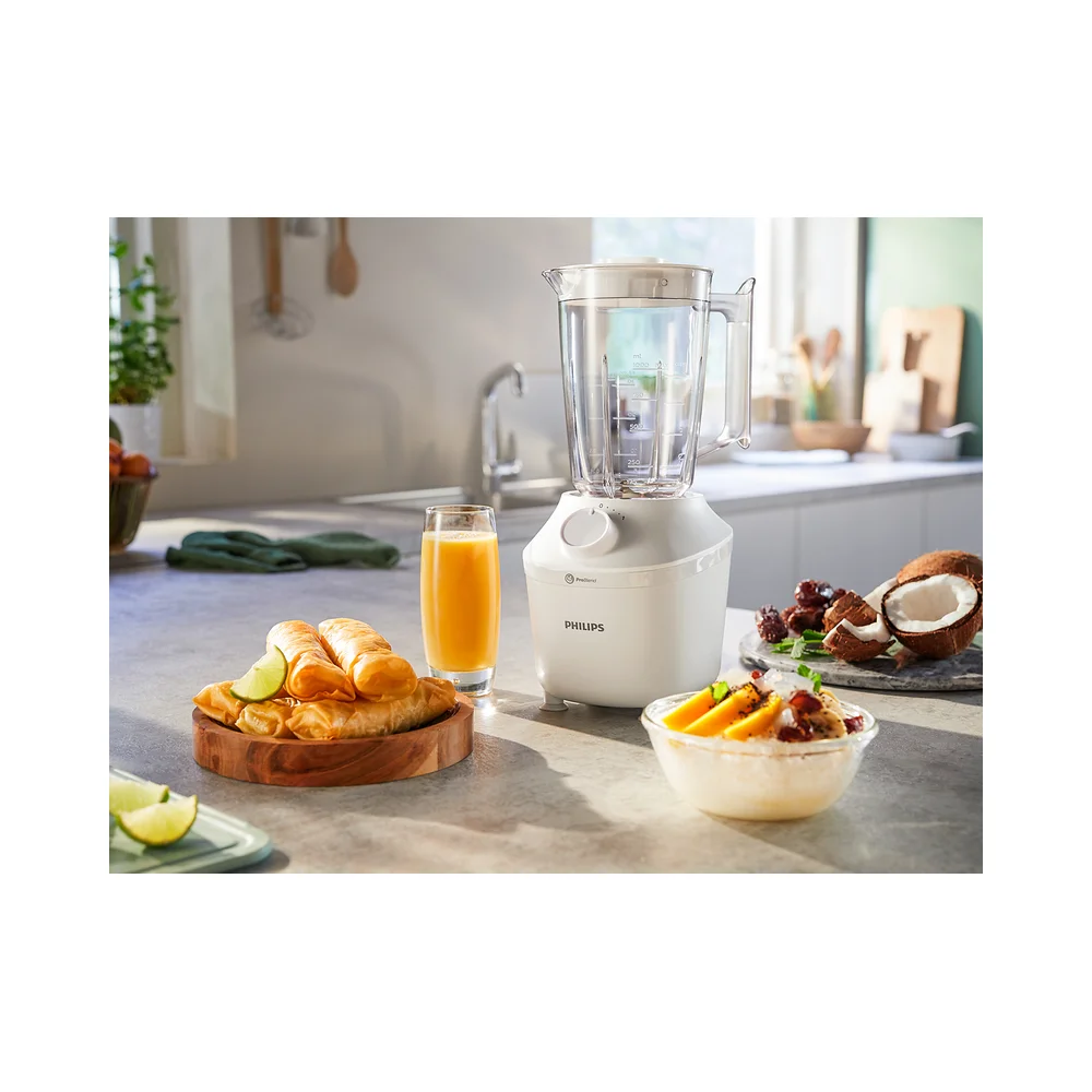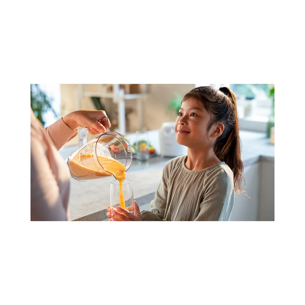Jedinstveni sustav ProBlend savršeno kombinira 3 tehnologije, prilagođene glatkom miješanju bez grudica u samo 45 sekundi*. Motor snage 450 W pokreće tok miješanja koji jednoliko miješa sve sastojke, dok je inovativan dizajn rezača posebno oblikovan kako bi maksimizirao područje rezanja. Na kraju, ali jednako važno, vrč je osmišljen s jedinstvenim rebrima kako bi sastojke neprekidno vraćao u tok miješanja.