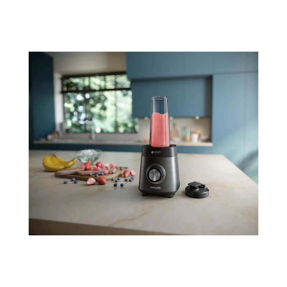 Blendajte izravno u vrč, zatim poklopite i uživajte u smoothijima dok ste u pokretu.