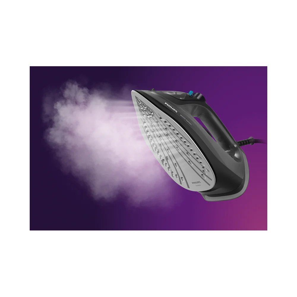 Naše parno glačalo serije 3000 olakšava glačanje snažnom dodatnom količinom pare koja izglađuje tvrdokorne nabore. Keramička grijaća ploča osigurava glatko klizenje, dok je spremnik za vodu kapaciteta 300 ml dovoljno velik za glačanje manjih količina bez nadopunjavanja.