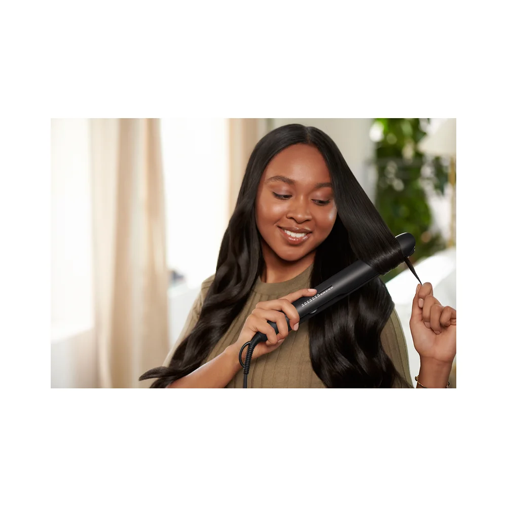 Stilizirajte kosu uz tehnologiju ThermoShield. Pruža dosljednu temperaturu od korijena do vrhova, manje oštećenja uzrokovanih toplinom i kosu zdravog izgleda. Povećajte sjaj kose uz dvostruku njegu ionima kako biste kreirali predivne frizure bez statičkog elektriciteta.