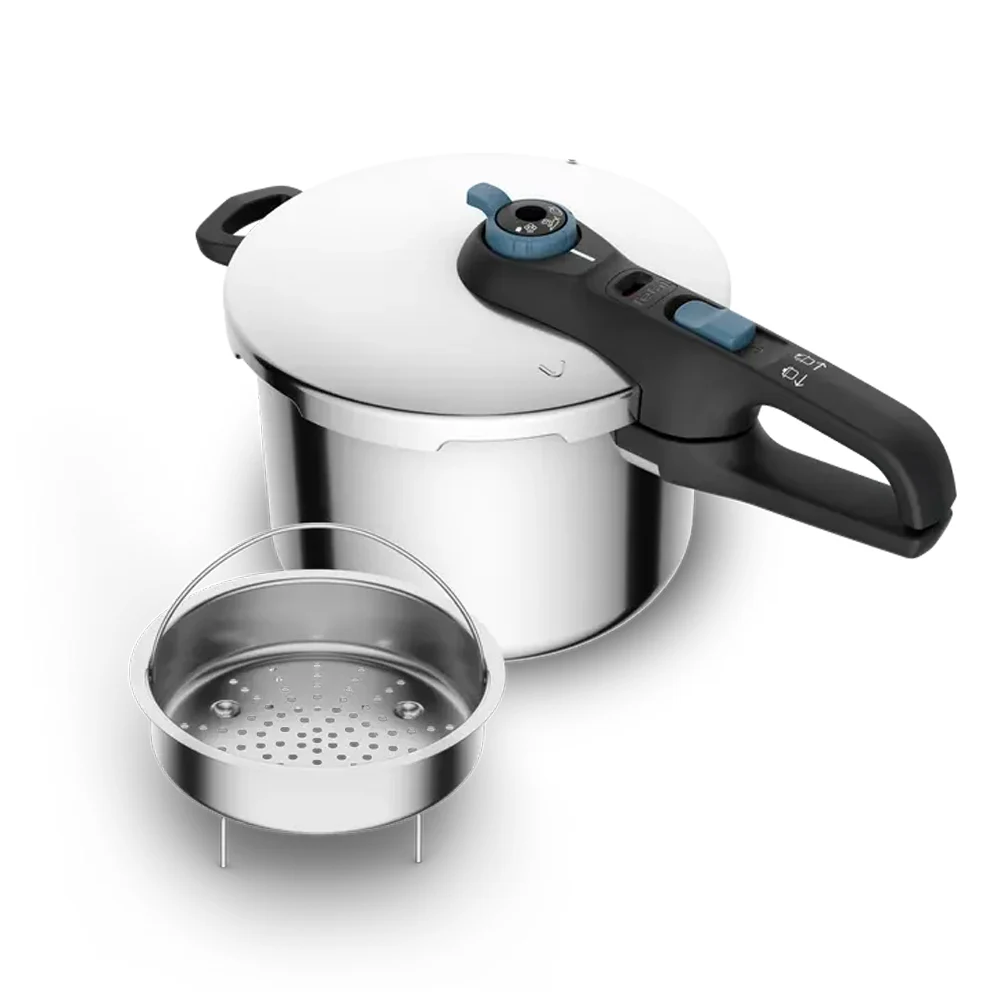 Kuvajte brzo, ali sa stilom! Secure Trendy Ekspres lonac iz Tefala karakteriše moderan dizajn uz malo boje, za savršeni dodatak vašoj kuhinji! Pripremite obroke dvostruko brže* i iskoristite najbolje moguće dva programa kako biste optimizovali proces pripreme – jedan za povrće puno hranljivih sastojaka i drugi za mekano meso koje je spremno u trenu. Napravljen da traje, Secure Trendy je opremljen bezbednosnim sistemom sa 5 tačaka za potpuni spokoj i potpuno je kompatibilan sa svim ringlama uključujući indukciju.