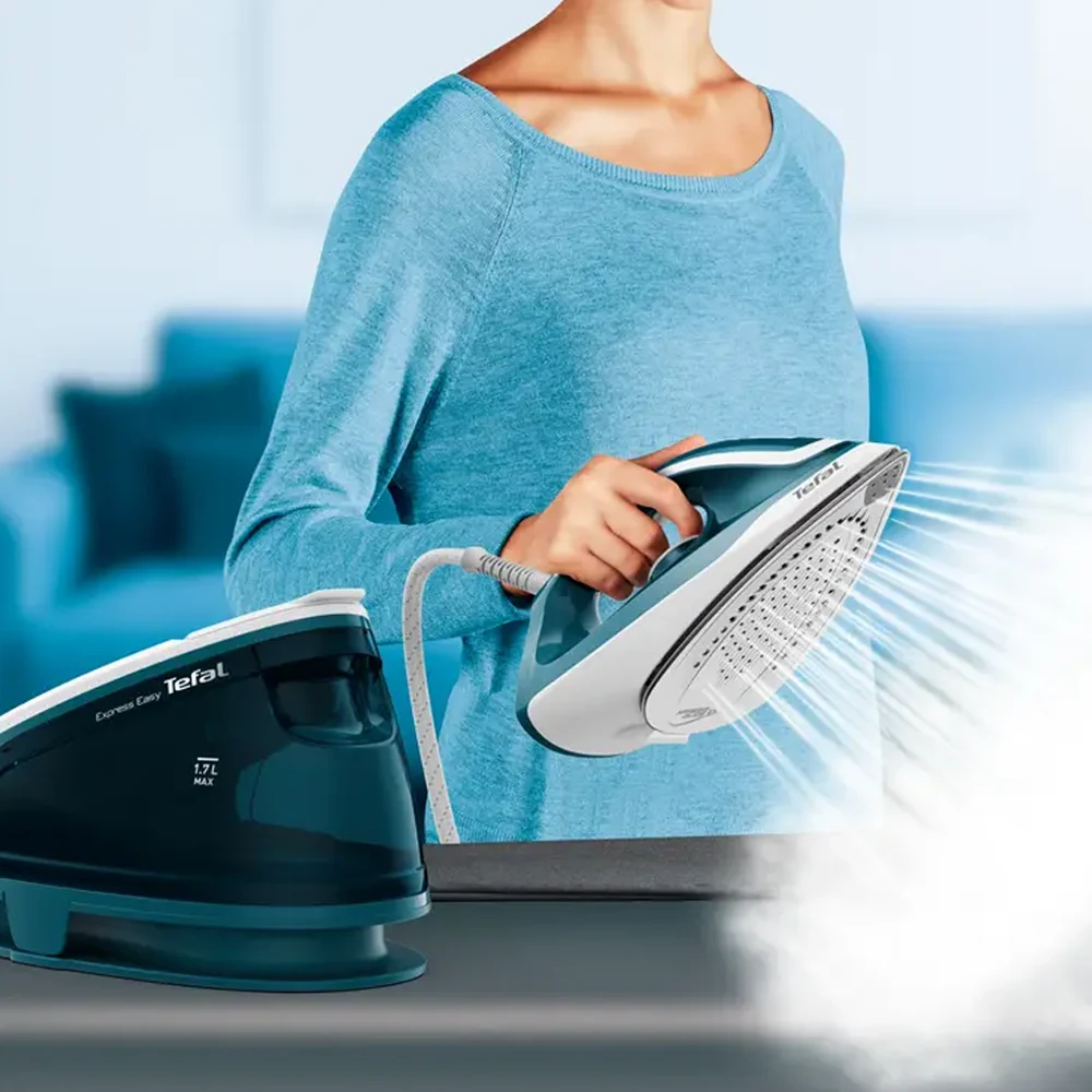 Express Easy parni generator savršen je spoj brzog peglanja i izvanredne praktičnosti. Express Essential djeluje brže od tradicionalne pegle na paru zbog svojih snažnih učinaka pare. Sve dolazi s velikim spremnikom vode kako bi se izbjeglo stalno punjenje tokom peglanja.
