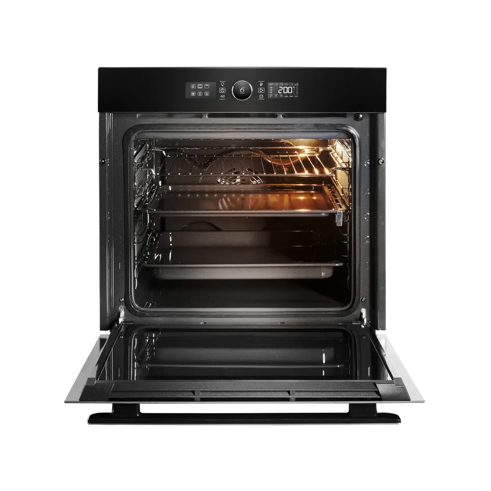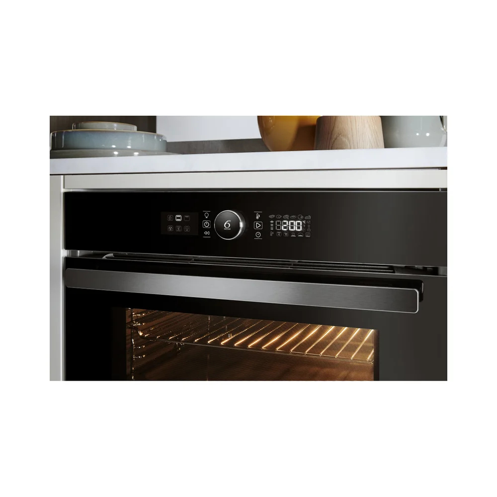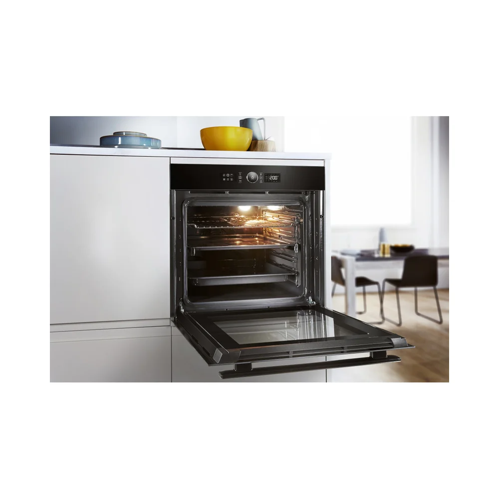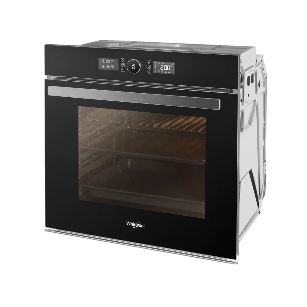 Ovu Whirlpool pećnicu odlikuju izvanrednan dizajn i superiorne performanse. Njezine napredne tehnologije omogućuju vam svaki put savršene rezultate kuhanja. Napredne tehnologije ove pećnice su: 6th Sense tehnologija koja neprestano nadzire temperaturu i vlagu hrane kako bi se u skladu s tim prilagodilo vrijeme kuhanja i postupak pečenja. To vam pomaže da savršeno napravite sočnu hranu bez obzira na to što kuhate. Sustav samočišćenja kataliza čije ploče (katalitičke ploče) apsorbiraju svu masnoću i sitne ostatke hrane svaki put nakon što se kuhanje završi i pretvaraju ih pepeo, koji se samo poslije obriše vlažnom krpom. Cook 3 funkcija koja omogućuje kuhanje do 3 jela odjednom, bez rizika od miješanja okusa i aroma proizvoda. Ostale karakteristike ove pećnice su: Ready to cook, energetski razred – A+, boja vrata – tamno siva, volumen pećnice – 73 L, broj rešetki unutrašnjosti – 2, Soft closing, vrsta vodilica u unutrašnjosti – teleskopske vodilice na jednoj razini, broj posuda – 2, tip zaslona – LED, Child lock – elektronska, brzo zagrijavanje, broj stakala u vratima – trostruko staklo, broj manualnih funkcija – 4, timer – elektronički, ukupan broj funkcija – 15, mehaničke i vrsta kontrola: elektroničke, broj specijalnih funkcija – 5, postavka vremena kuhanja – start i stop, snaga roštilja – 2450 W, visina proizvoda – 595mm x širina proizvoda – 595mm x dubina proizvoda – 564mm