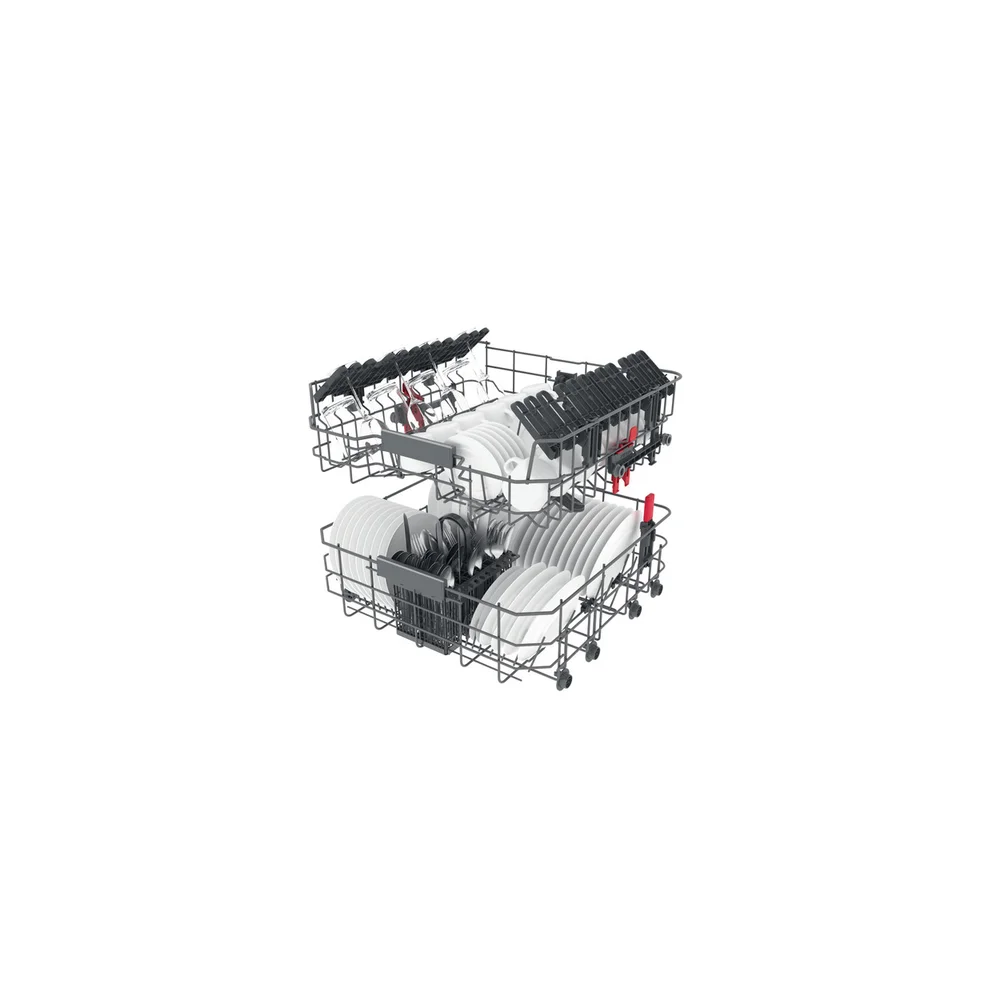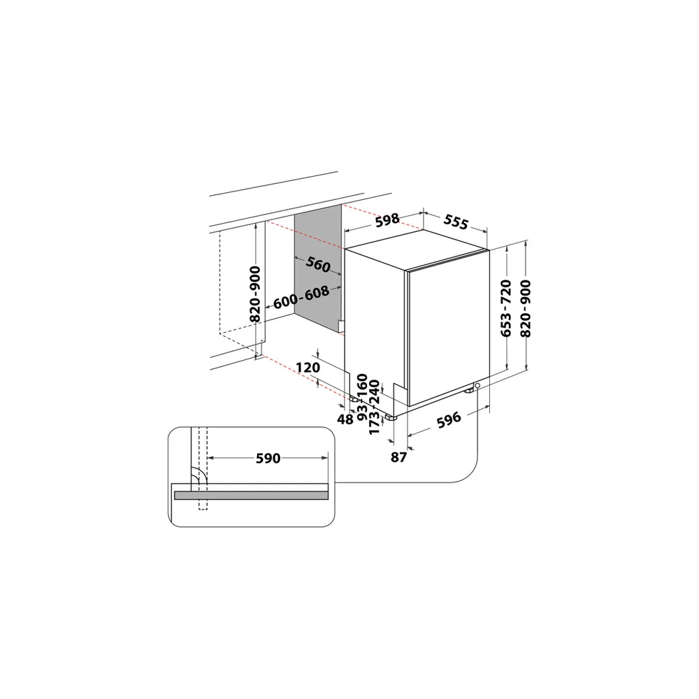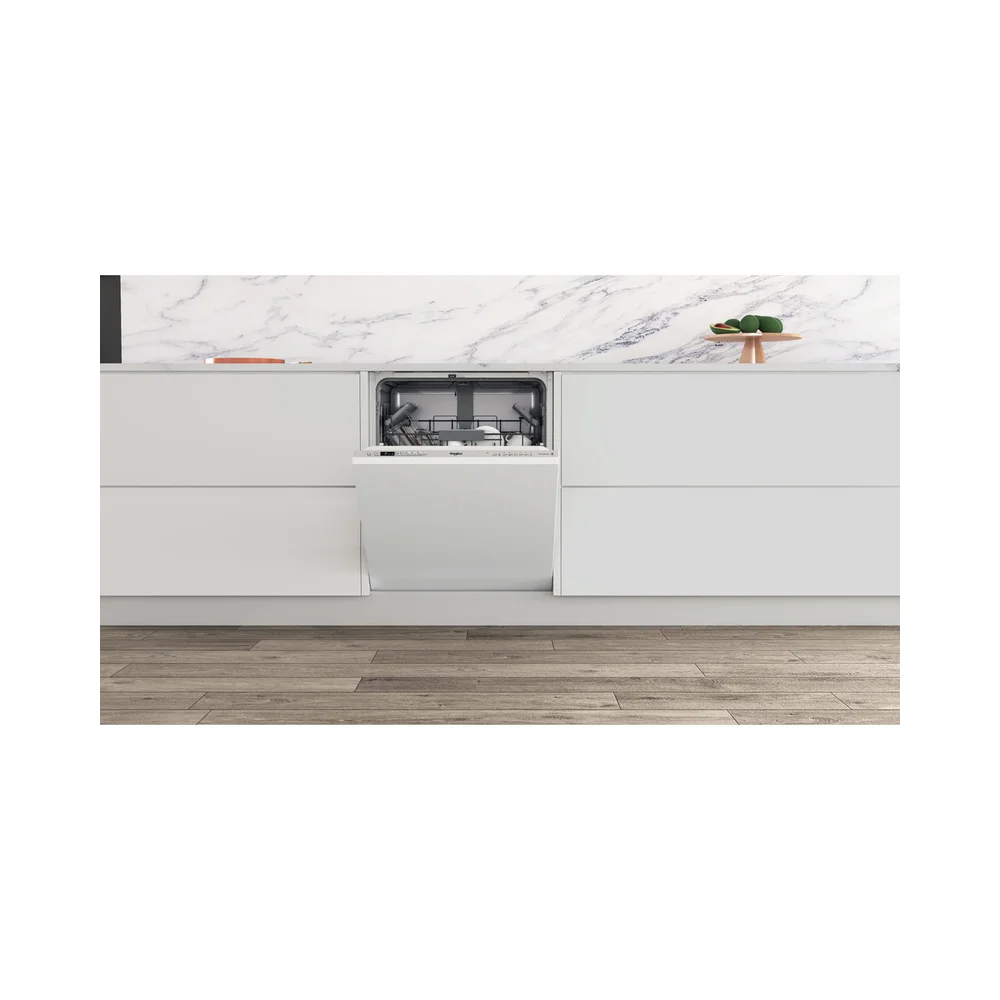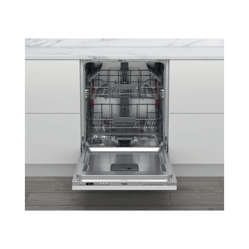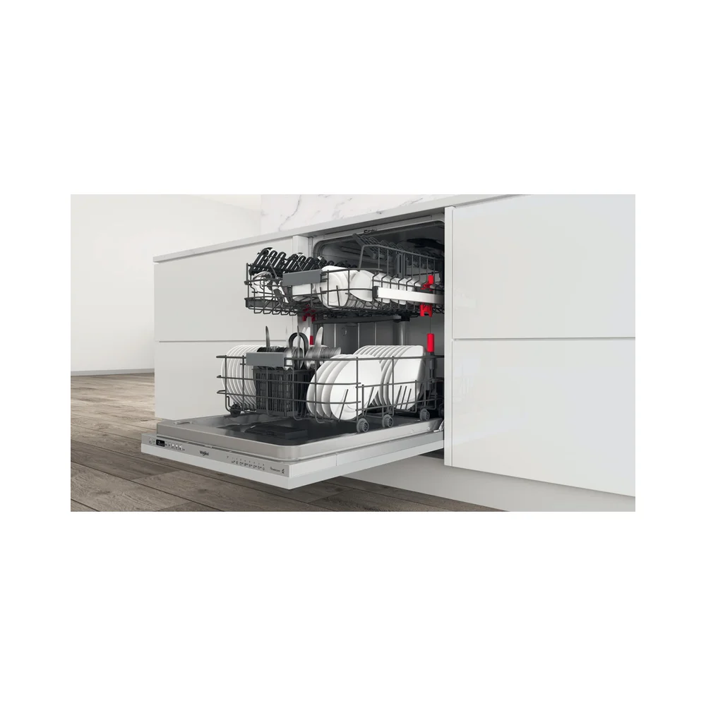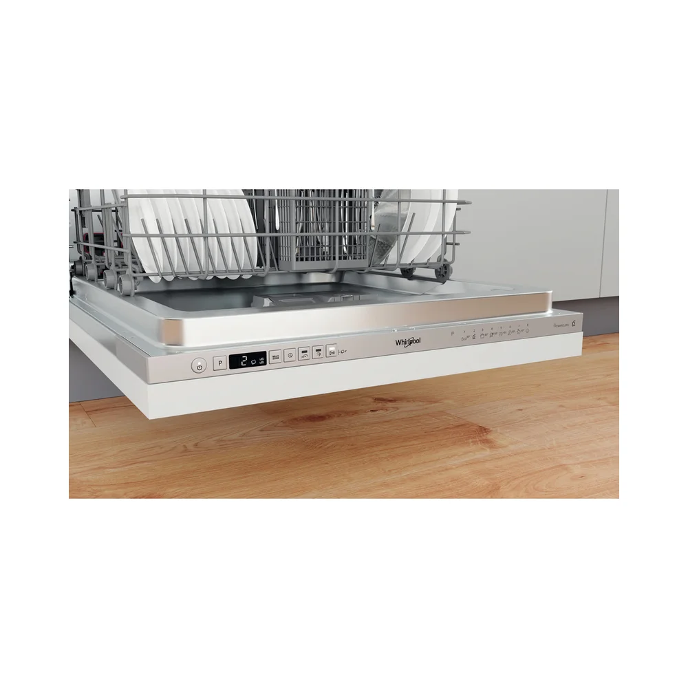 Ova Whirlpool ugradbena perilica posuđa svojim funkcijama osigurava uvijek čisto i suho posuđe. Najtvrdokornija prljavština je uklonjena uz uštedu vremena i resursa. Napredne tehnologije ove perilice posuđa su: 6th Sense tehnologija sa senzorima koji će otkrit veličinu opterećenja i razinu zaprljanosti kako bi se u skladu s tim prilagodila temperatura, vrijeme i snaga ciklusa pranja, s naglaskom na uštedu uz najbolje rezultate pranja. Power Clean Pro njezine posebne mlaznice usmjeravaju vodu s velikom preciznošću, kako bi se riješili čak i najupornije prljavštine i zagorene hrane. NaturalDry sustav sušenja nakon završetka ciklusa otvara vrata kada temperatura iznutra padne na oko 40 °C. Zahvaljujući tome, posuđe je suho uz nižu potrošnju energije, a kuhinjski namještaj je ostao siguran od vruće pare. Ostale karakteristike ove perilice posuđa su:, broj setova – 14, potrošnja vode 9.5 L, energetski razred – E, razina buke (dB(A)) 46, sustav zaštite od izlijevanja, vrsta zaslona – 7- Segment / 1-12h boja – srebrna, broj košara – 2, prilagodljiva gornja košara, Košara za pribor za jelo, Performanse pranja – A, Multizone, broj programa – 8, pomična gornja košara, indikator sredstva za ispiranje – mehanički, indikator soli – elektronski, broj i tip prskalica – 3 plastična injektora, opcija odgode starta, svjetlosni indikator količine tekućine za ispiranje, pranje u jednoj košari – gornja ili donja, Program za staklo, silent opcija, broj različitih temperatura pranja – 3, visina proizvoda – 820mm x širina proizvoda – 598mm x dubina proizvoda – 555mm